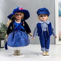 Кукла коллекционная парочка набор 2 шт "Лена и Сергей в ярко-синих нарядах" 30 см