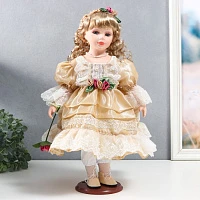 Кукла коллекционная керамика "Таечка в сливочном платье с кружевом, с сумкой" 40 см