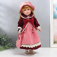 Кукла коллекционная керамика "Нина в розовом платье и бордовом жакете" 40 см