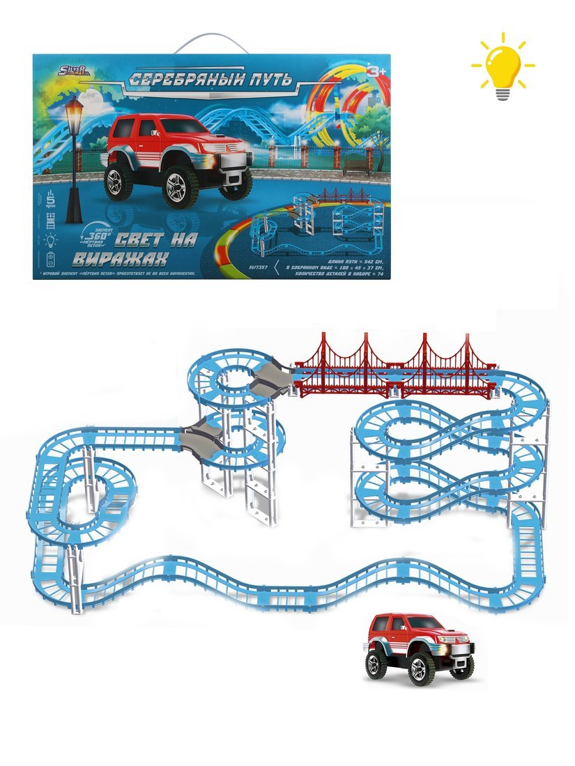Автотрек эл., 5 уровней, длина пути 542 см, свет, в комплекте: деталей 74шт., разворотный элемент 2шт., машина эл., эл.пит.АА*1шт.не вх.в комплект, коробка