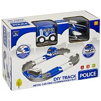 Полицейский трек 95 см с 2 шт. мет. машинами (фургон, вертолёт) на бат., свет., музык.