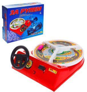 Игрушка "За рулем" заинтересует юных поклонников скорости. Игрушка знакомит с навыками управления автомобилем, способствует развитию реакции и наблюдательности, координации движений. Имеет звуковое сопровождение. Вращающийся полигон имеет три скорости движнеия, что соответствием трем скоростям автомобиля. Работает от двух (или трех, в зависимости от модели) последовательно соединенных элементов "А" (R14). Элементы питания в комплект не входят.Комплектность:игрушка "За рулем",рулевое колесо,макет автомобиля,липкая аппликация.
