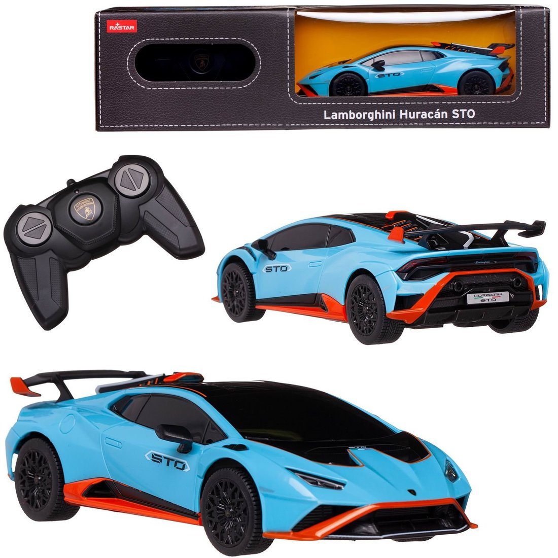 Машина радиоуправляемая RASTAR Lamborghini Huracan STO, в масштабе 1:24 Лицензионная модель. Яркая и реалистично исполненная машинка с литым кузововом. Независимая система подвески.Рабочая частота 2,4 GРадиус действия пульта: до 20 мМашинка может двигаться вперед, назад, вправо, влево.Питание: 3 батареек AA / LR6 1.5VПитание пульта управления: 2 батарейки AA / LR6 1.5VБатарейки не входят в комплект.Цвет: голубой с ярко оранжевыми деталями.