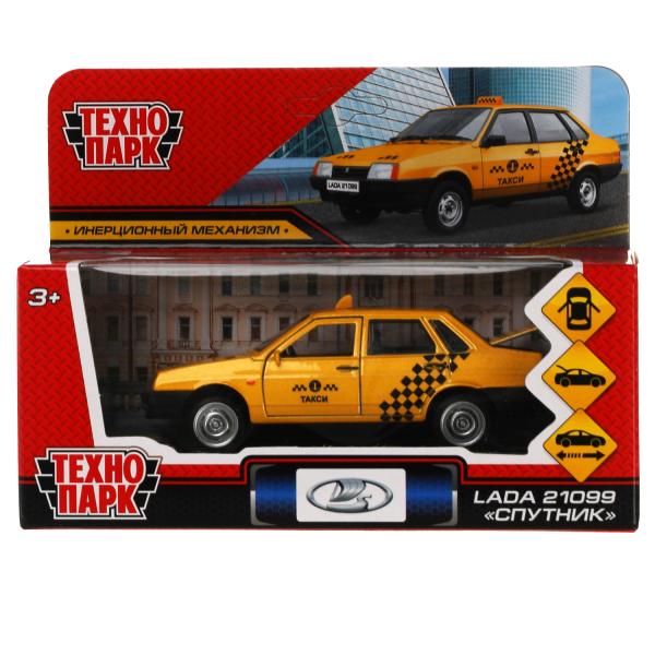 Машина металл ВАЗ-21099 "СПУТНИК" ТАКСИ 12 см, двери, багаж, желтый, кор. Технопарк