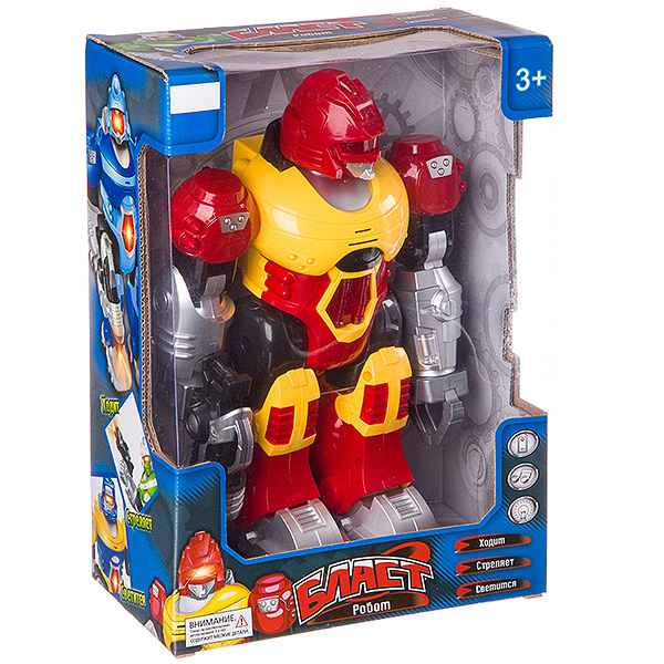 Робот Бласт на батар.,ходит,свет.,озвуч,подвижн.руки и голова,красн.,ВОХ 20х11,5х28см,арт.ZYC-0752-1