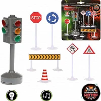 Набор светофор на батарейках, с дорожными знаками серии "Техномаркет", звук, свет, арт.ZYF-0055