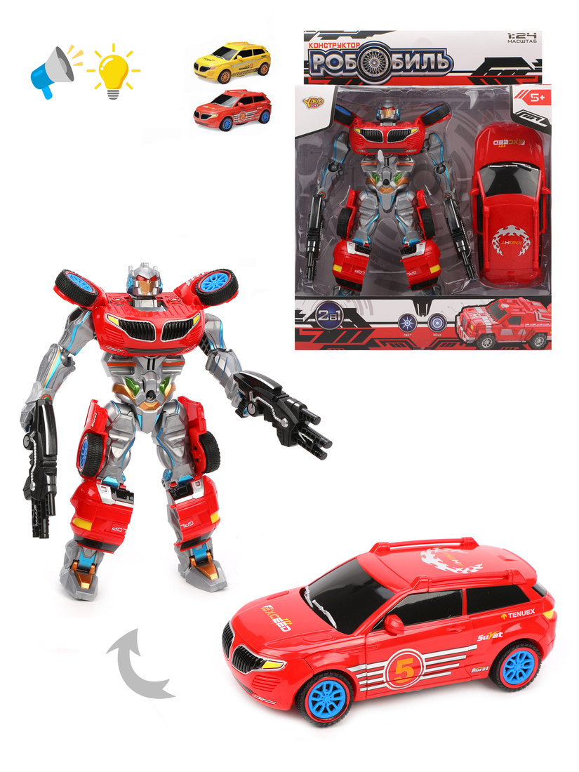 Игровой набор Робот-трансформер, свет, звук, в комплекте предметов 3шт.,тестовые элементы питания LR41*3 шт., коробка, в ассортименте