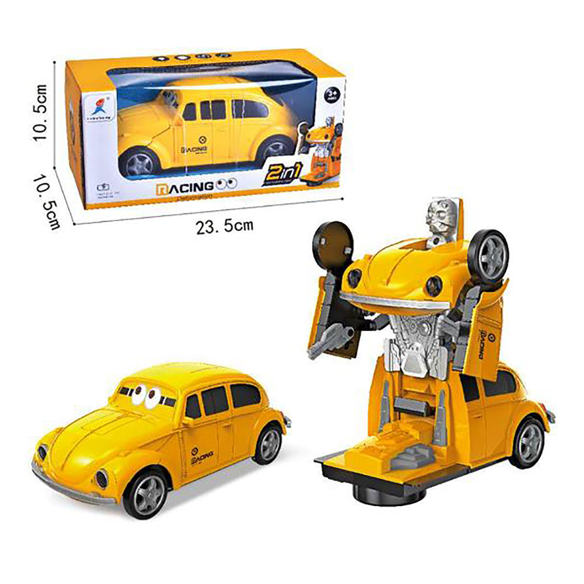 Музыкальная игрушка машина трансформер. Машинка работает от батареек АА 3 шт., не входят в комплект. Функционал игрушки: -ездит в случайном направлении; -передние колёса не подвижны; -при включении играет музыка, светятся фары; -машинка трансформирует переднюю половину в робота и обратно. Размеры упаковки: 24*11*11 см. Размеры машинки в сложенном виде: 22*9*8 см. Изготовлено из пластика.