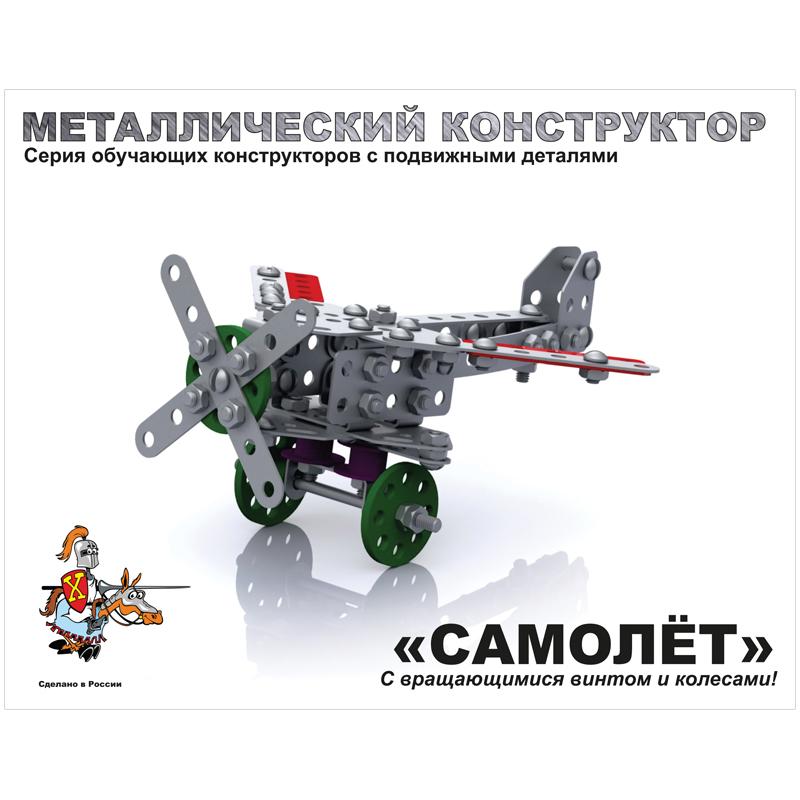 Конструктор металлический "Самолет" из 135 элементов, с врящающимися винтом и колесами.Инструкция по сборке в комплекте.