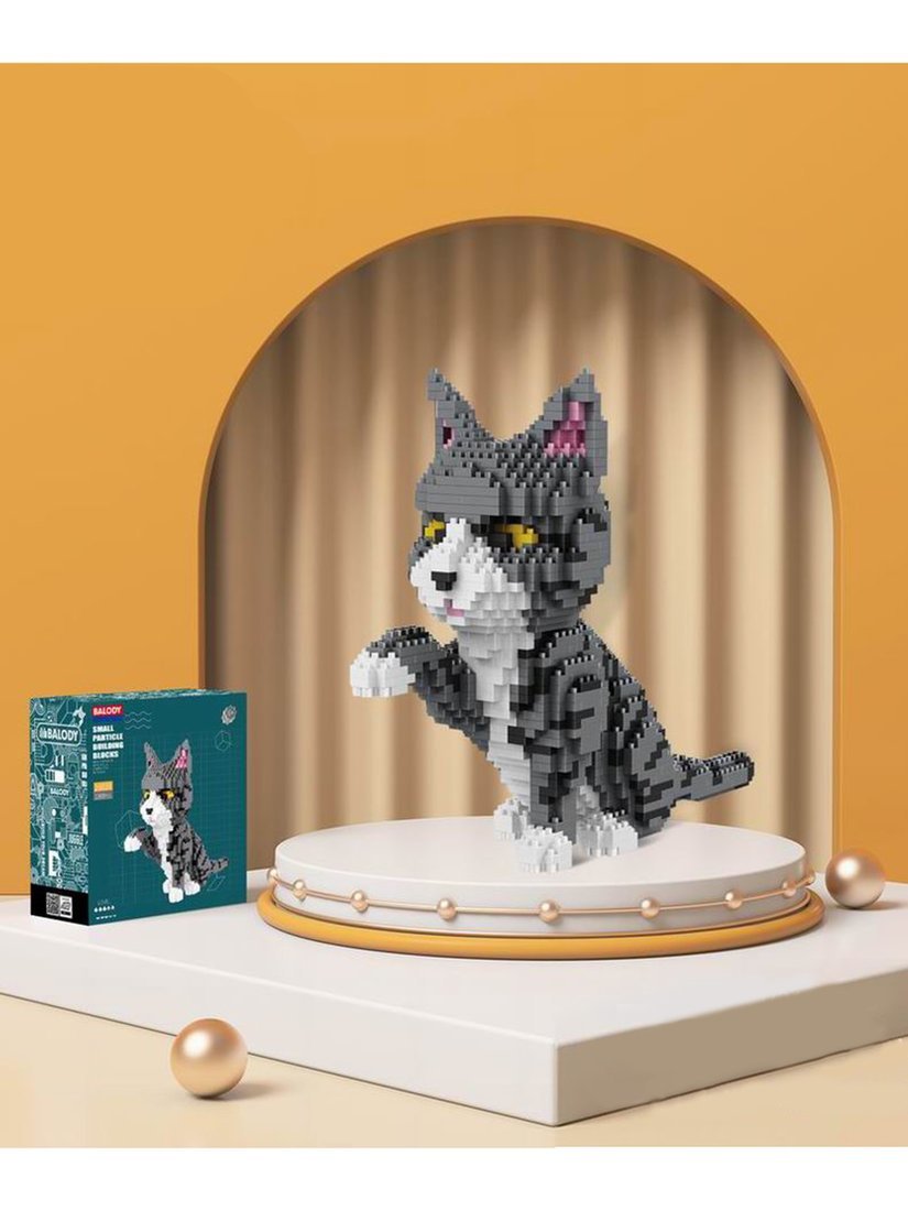 Конструктор котенок серый, мини блоки, 1300 деталей