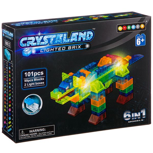 Конструктор пластмас. 101 дет., светящ. c 2-мя LED элементами, CRYSTALAND, динозавр, 6в1 моделей, ВО