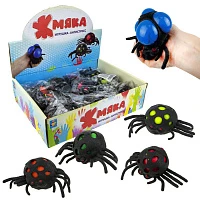 1TOY Жмяка липучая паук со светом, 7 см, 4 цвета, 12шт.