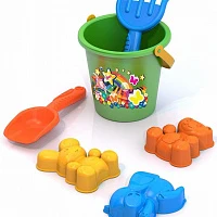 Набор №21 (ведро-цветок среднее, ситечко-цветок, совок№2, грабельки№2, 3 формочки)