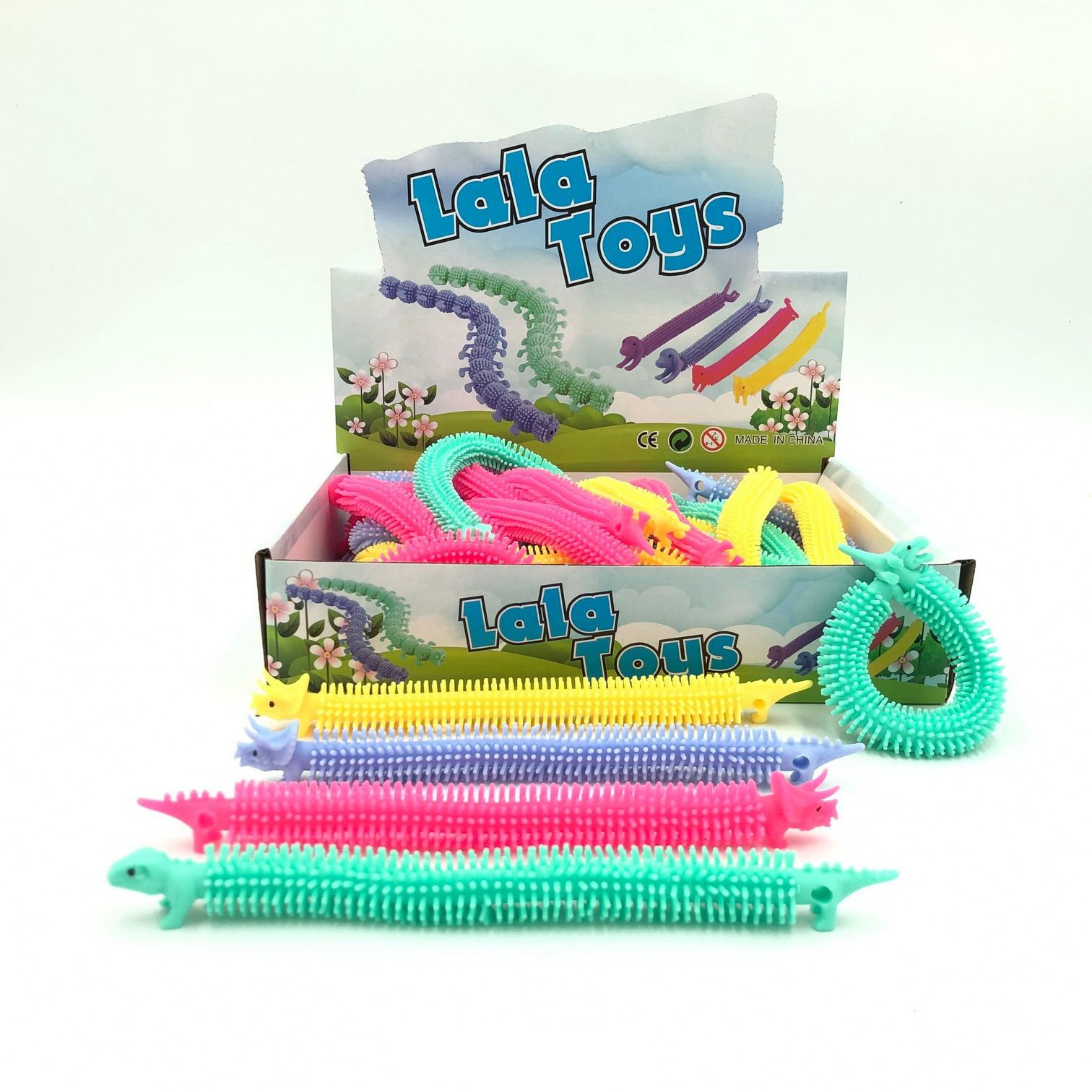 Игрушка-тянучка в виде динозавра размером 20 см. Игрушка растягивается до 2-х метров. Ее можно не только растягивать, но и закреплять в виде браслета. Материал – TPR. Поставка в дисплее по 50 шт. В ассортименте 6 цветов. Размер дисплея составляет 25*18,7*5,5 см.