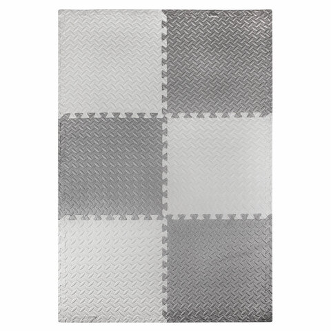 Коврик-пазл напольный 1,5х1 м, 6 шт., 50х50 см, толщина 1 см, серый, светло-серый, ЮНЛАНДИЯ, 664810