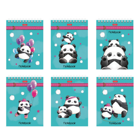 Блокнот МАЛЫЙ ФОРМАТ А6, 60 л., гребень, картон, клетка, HATBER, "Плюшевые панды", 088304, 60Б6В1гр