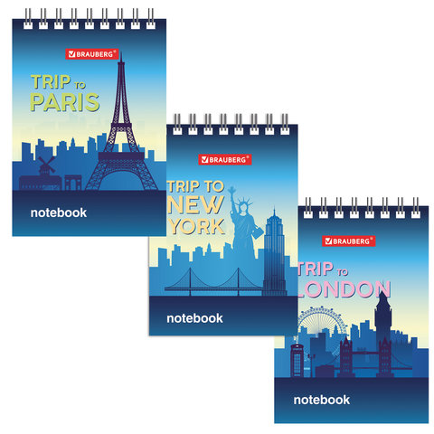 Блокнот А7 40 листов, гребень, клетка, BRAUBERG "Trip to…", 75х105 мм, 129856