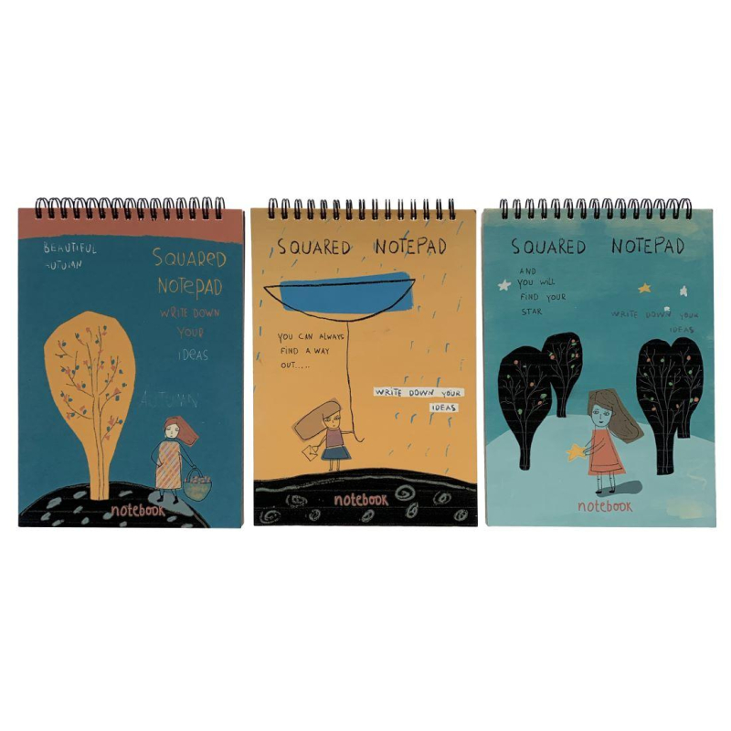 Блокнот Kroyter А5,80л, клетка,спир,обл.карт.Crema,диз.в асс,64546