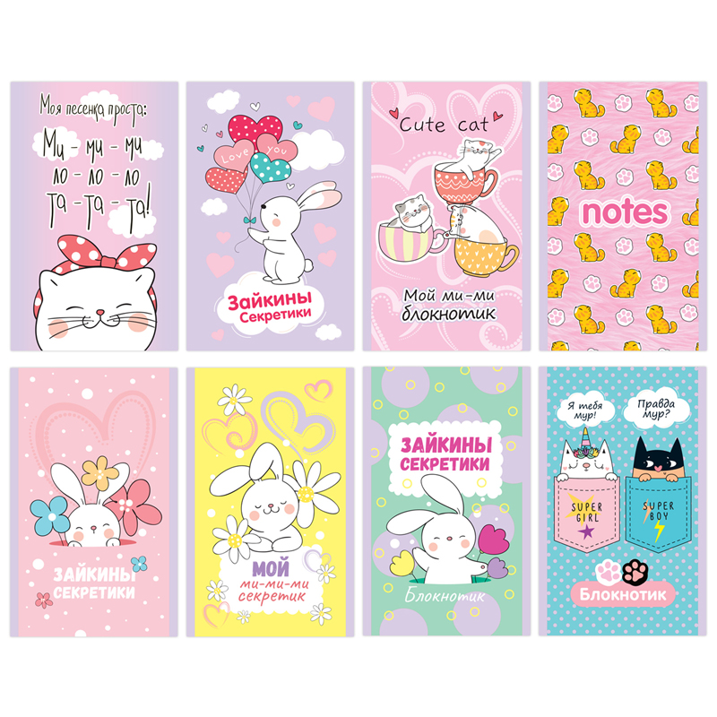 Блокнот А6 32л., на скрепке BG "Зайкины секреты", блестки, ассорти