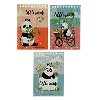 Блокнот А6, 40 листов на гребне "Удивительные панды", обложка ламинированный картон, МИКС