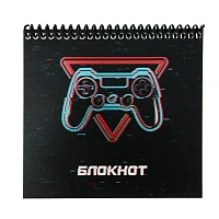 Блокнот А6+, 40 листов в клетку на гребне "Геймпад на черном", обложка мелованный картон, твин-лак, фольга