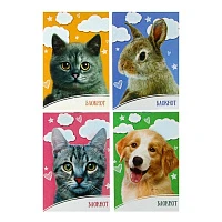 Блокнот А6, 40 листов в клетку на скрепке "Котята и щенята", обложка мелованная бумага, МИКС