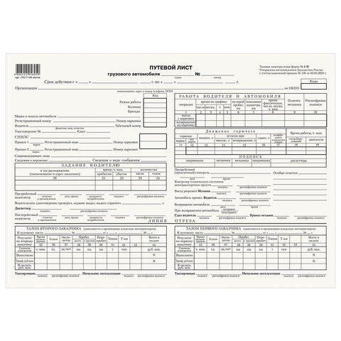 Бланк бухгалтерский типографский "Путевой лист грузового автомобиля с талоном", А4 (198х275 мм), СПАЙКА 100 шт., 130137