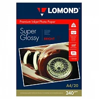 Фотобумага PREMIUM суперглянцевая, А4, 240 г/м2, односторонняя, ярко-белая, 20 листов, LOMOND, 1105100