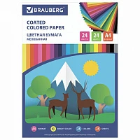 Цветная бумага, А4, мелованная, 24 листа, 24 цвета, на скобе, BRAUBERG ЭКО, 200х280 мм, "Природа", 111329