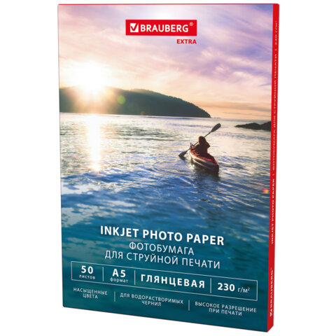 Глянцевая односторонняя фотобумага BRAUBERG EXTRA подходит для печати на всех типах струйных принтеров. Улучшенное покрытие позволяет достигнуть новых глубин цветопередачи, передать все тонкости оттенков и создавать яркие и реалистичные изображения. Фотобумага представлена в популярном формате А5 (148х210 мм). Плотность бумаги 230 г/м2 исключает просвечивание изображения. Гладкая поверхность обеспечивает превосходное качество, а особый состав покрытия – идеальную цветопередачу. Печать на фотобумаге с глянцевым покрытием возможна только водорастворимыми чернилами. Поставляется набором по 50 листов в картонной упаковке.