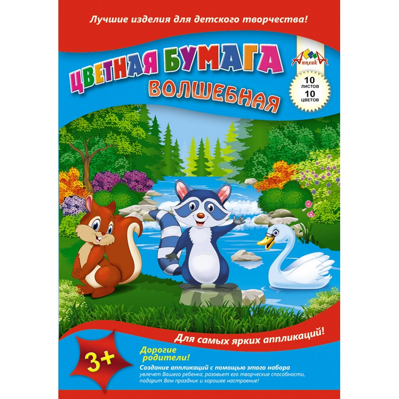 Бумага цветная А4,10л.10цв.офсет (+зол/сер) Апплика в ассортименте С2777