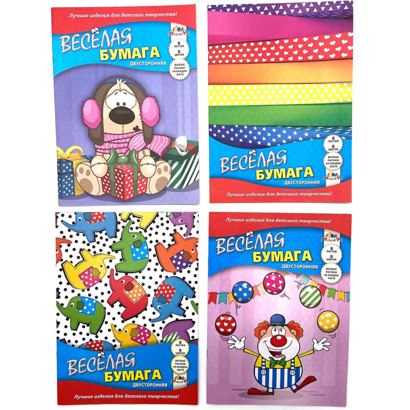 Бумага цветная А4 8л 8цв двустор.офс.скоба,с рис. в ассортименте С2780
