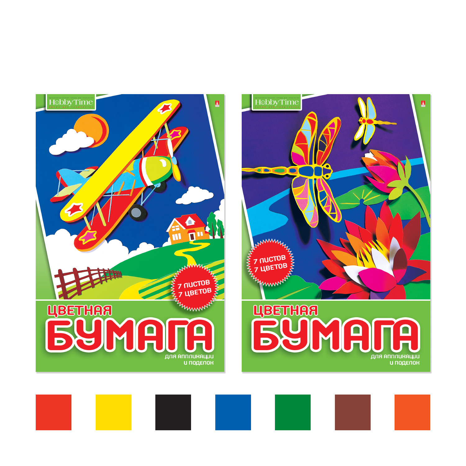 НАБОР ЦВЕТНОЙ БУМАГИ А4, 7Л. 7ЦВ. "ХОББИ ТАЙМ" 2 ВИДА