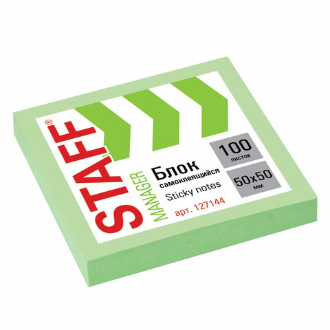 Блок самоклеящийся (стикер) STAFF, 50х50 мм, 100 л., зеленый, 127144