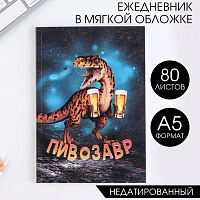 Ежедневник в тонкой обложке «Пивозавр» А5, 80 листов