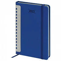Еженедельник датированный 2023 МАЛЫЙ ФОРМАТ 95х155 мм А6, BRAUBERG "Select", балакрон, синий, 113970