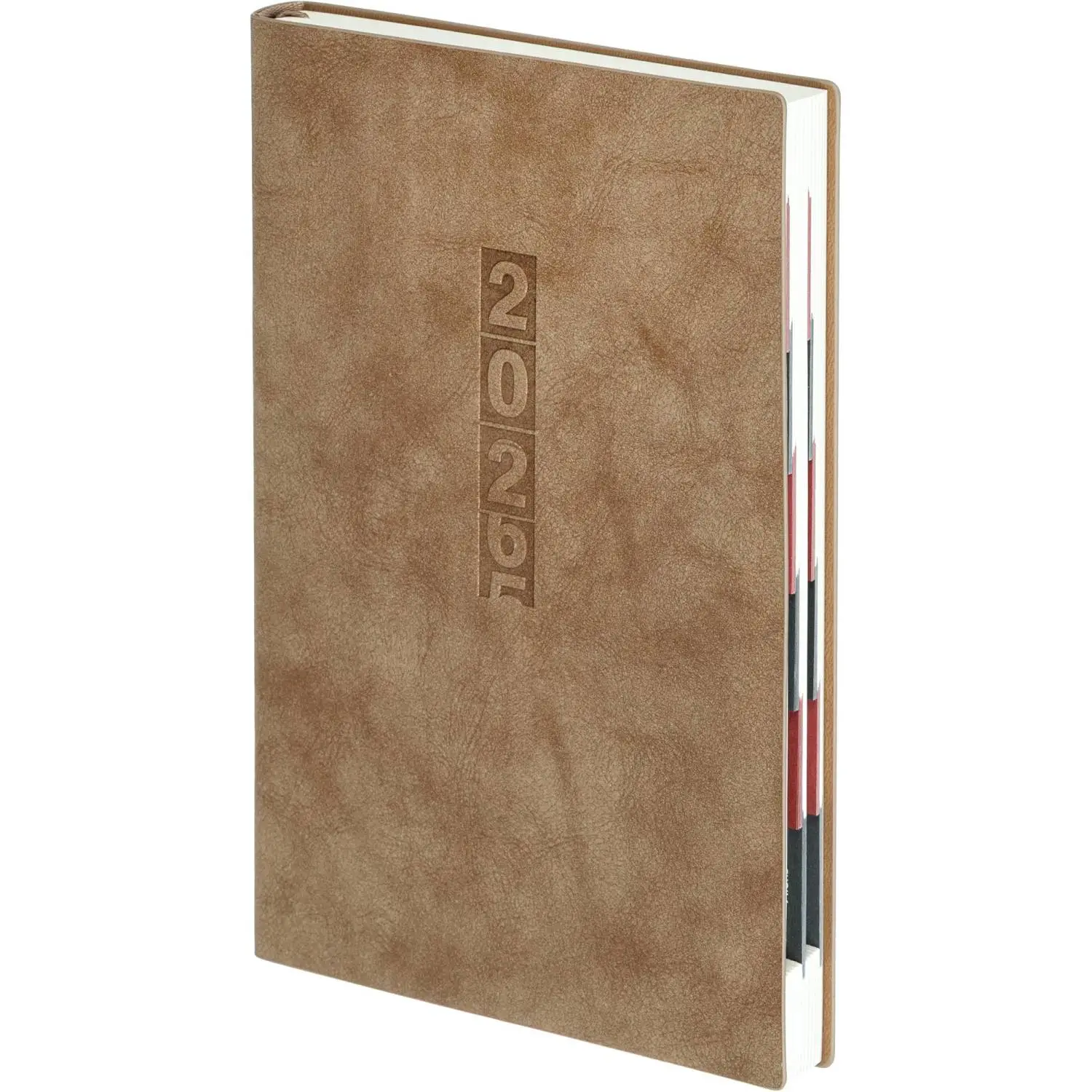 Ежедневник датированный 2026 год Escalada искусственная кожа А5 176 листов бежевый Обложка: мягкий переплёт, запаянный край, блинтовое тиснение, обстрочка по периметру — нет, скруглённый корешок, прямые углы обложки. Внутренний блок: ниткошвейный, кремовый офсет 70 г/кв.м, печать в две краски (линия), прямые углы блока, перфорация углов блока — есть, справочный материал — есть. Красочность форзаца: печать пантоном. Закладка: одно ляссе. Каптал: есть. Особенности: вырубка блока по месяцам, в блоке использованы мотивирующие высказывания экстраординарной личности, предпринимателя и миллиардера, титулованного «Провидца века», шоумена и телеведущего, бывшего владельца конкурса красоты «Мисс Вселенная» и дважды президента США — Дональда Трампа. Индивидуальная упаковка: промостикер + ПЭТ-пакет.