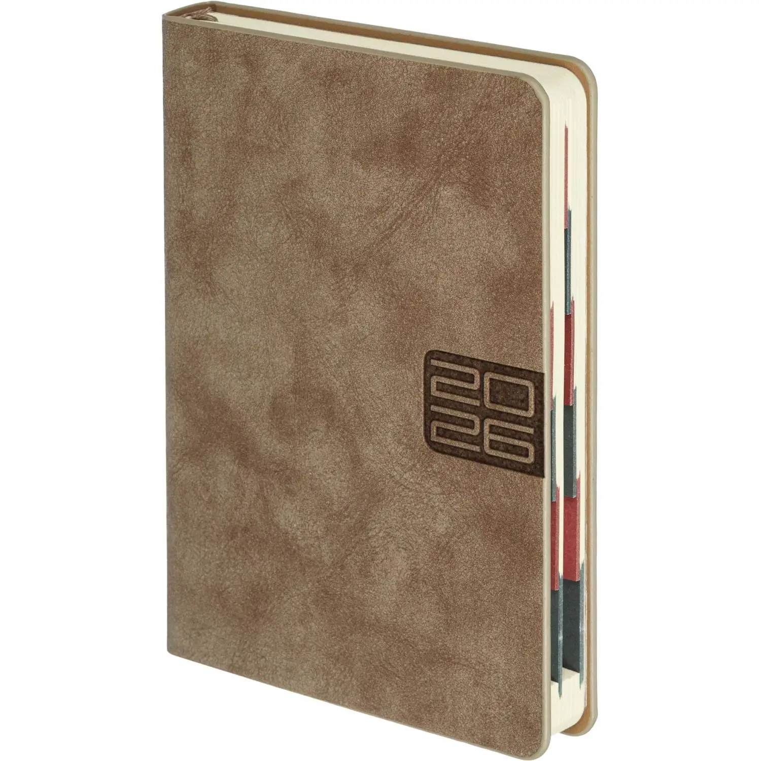 Ежедневник датированный 2026 год Escalada искусственная кожа А6+ 176 листов бежевый Обложка: твёрдый переплёт, запаянный край, блинтовое тиснение, обстрочка по периметру — нет, скруглённый корешок, закруглённые углы обложки. Внутренний блок: ниткошвейный, тонированный офсет 70 г/кв.м, печать в две краски (линия), закруглённые углы блока, перфорация углов блока — есть, справочный материал — есть. Красочность форзаца: печать пантоном. Закладка: два ляссе. Каптал: есть. Особенности: вырубка блока по месяцам, в блоке использованы мотивирующие высказывания экстраординарной личности, предпринимателя и миллиардера, титулованного «Провидца века», шоумена и телеведущего, бывшего владельца конкурса красоты «Мисс Вселенная» и дважды президента США — Дональда Трампа. Индивидуальная упаковка: промостикер + ПЭТ-пакет.