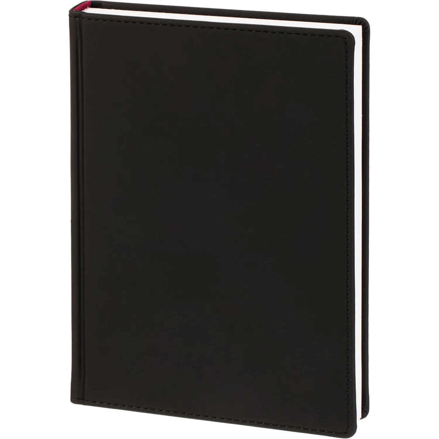 Ежедневник датированный 2026 год Attache Velvet искусственная кожа А5 168 листов чёрный Ежедневник датированный 2026 год Attache Velvet предназначен для ежедневного планирования задач и ведения записей в деловом формате. Модель выполнена в формате А5 и имеет размер 14.6?20.6 см, удобный для повседневного использования. Обложка из искусственной кожи чёрного цвета оформлена в однотонном стиле, дополнена твёрдой основой и прострочкой по периметру, что делает изделие прочным и аккуратным. Вертикальная ориентация облегчает навигацию по записям. Блок содержит 168 листов белой офсетной бумаги плотностью 70 г/кв. м, разлинованных в линейку и напечатанных в две краски. Страницы надёжно скреплены с помощью сшивки, обеспечивающей долговечность ежедневника. Внутри предусмотрена датированная разметка на 2026 год, а также календарный блок на 2 года. Скругление, вырубка и перфорация углов отсутствуют.