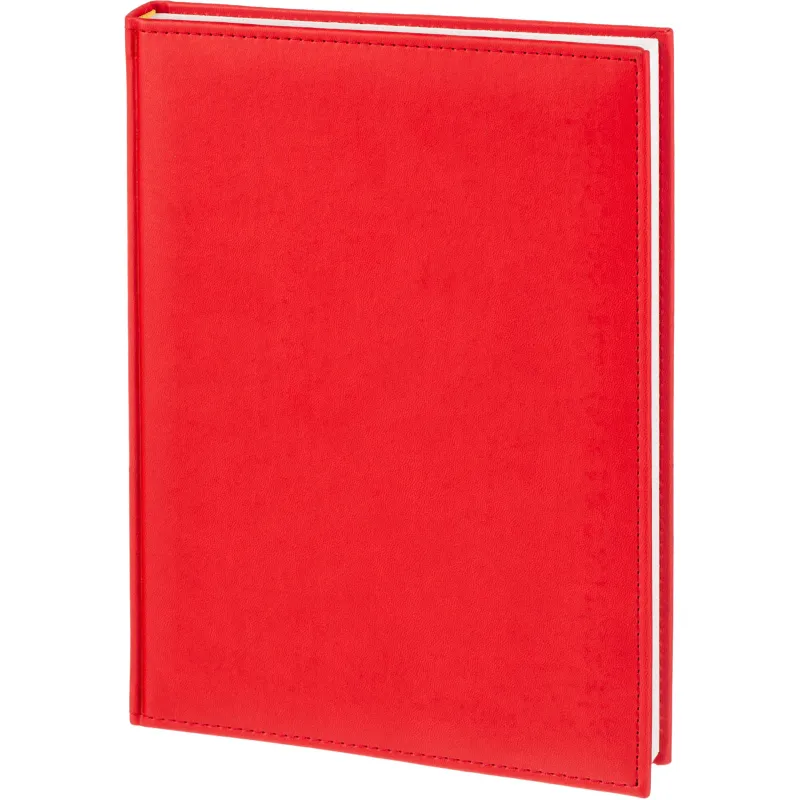 Ежедневник датированный на 2026 год. Формат: 200?270 мм. Цвет: красный. Блок 352 страницы (176 листов) в 2 краски. Бумага офсетная 70 г/кв.м. Блок с перфорацией уголка. Алфавитный блок без вырубки. Дополнительный блок со справочной информацией включает: календарь на 2026-2029 года, планирование на год, справочная информация, карта часовых поясов, лучшие места отдыха в зависимости от времени года, международные размеры одежды и обуви, символы по уходу за одеждой, знаки зодиака, питание и расход калорий. Закладка-ляссе. Твердая обложка с прошивкой по периметру выполнена из искусственной кожи высокого качества. Возможно нанесение логотипа на обложку, любым способом тиснения (блинт или фольга).