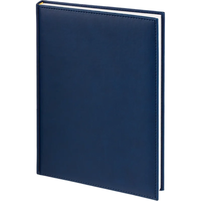 Ежедневник датированный на 2026 год. Формат: 200?270 мм. Цвет: синий. Блок 352 страницы (176 листов) в 2 краски. Бумага офсетная 70 г/кв.м. Блок с перфорацией уголка. Алфавитный блок без вырубки. Дополнительный блок со справочной информацией включает: календарь на 2026-2029 года, планирование на год, справочная информация, карта часовых поясов, лучшие места отдыха в зависимости от времени года, международные размеры одежды и обуви, символы по уходу за одеждой, знаки зодиака, питание и расход калорий. Закладка-ляссе. Твердая обложка с прошивкой по периметру выполнена из искусственной кожи высокого качества. Возможно нанесение логотипа на обложку, любым способом тиснения (блинт или фольга).