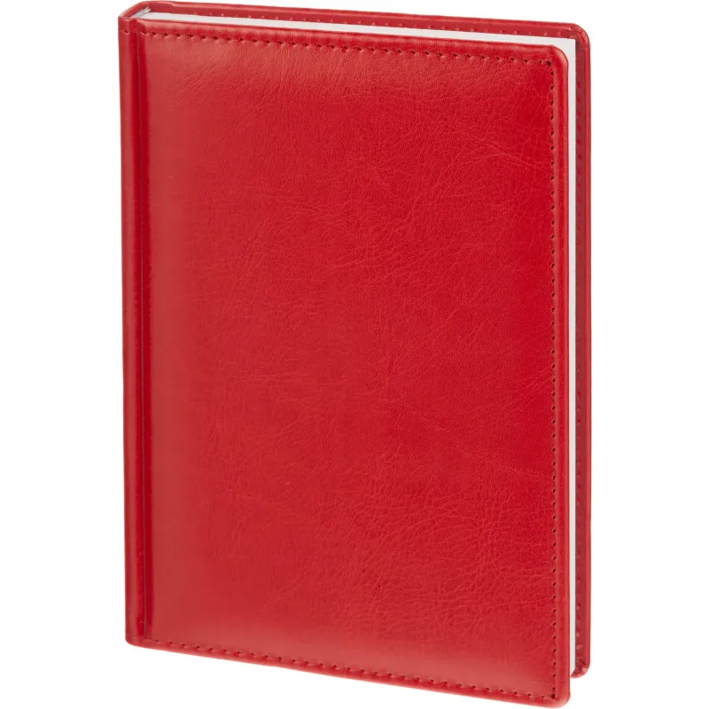 Ежедневник датированный на 2026 год Attache Agenda искусственная кожа А5 176 листов красный Это надёжный помощник для планирования и организации рабочего времени. Он идеально подходит для использования в офисе или на учёбе. Данный ежедневник имеет формат A5, содержит 176 листов. Твёрдая обложка с поролоном, выполненная из высококачественной искуственной кожи красного цвета, придаёт изделию элегантный и профессиональный вид. Страницы выполнены из белой офсетной бумаги плотностью 70 г/кв.м. Дизайн обложки: универсальный. Тип крепления — сшивка. Печать блока в 2 краски. Вид линовки — линейка. Размер: 14.8?21.8 см. Среди дополнительных характеристик — ляссе серебристого цвета и уникальный блок, выполненный в двух цветах. На страницах предусмотрен календарь на 2026-2027 гг., что позволяет удобно планировать мероприятия и торжественные даты. Ежедневник содержит информационно-справочный блок, включая личные данные, праздники, дни рождения и полезные сервисы. Блок также оснащён местами для записи регулярных платежей, важных телефонов и различных измерений. Перфорация уголка упрощает использование и добавляет удобства. Возможность нанесения логотипа на обложку любым способ тиснения открывает дополнительные возможности для корпоративного использования. Ежедневник Attache — отличный выбор для тех, кто ценит практичность и стиль в повседневной жизни.