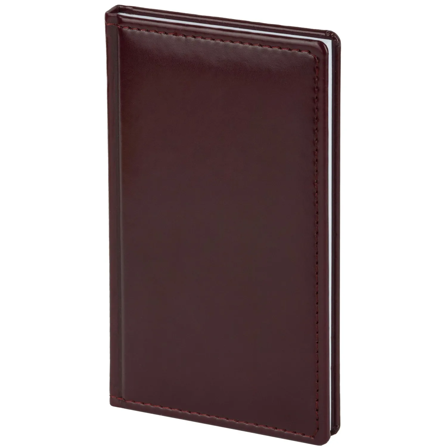 Еженедельник датированный на 2026 год. Формат: 90?160 мм. Цвет: бордовый. Блок 128 полос (64 листа) в 2 краски. Бумага офсетная 70 г/кв.м. Блок с перфорацией уголка. Дополнительный блок со справочной информацией. Календарь на 2026-2027 года. Твердая обложка с прошивкой по периметру выполнена из искусственной кожи высокого качества. Возможно нанесение логотипа на обложку, любым способом тиснения (блинт или фольга).