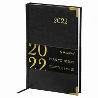 Ежедневник датированный 2022 А5 138x213 мм BRAUBERG "Stylish", под кожу, черный, 112788