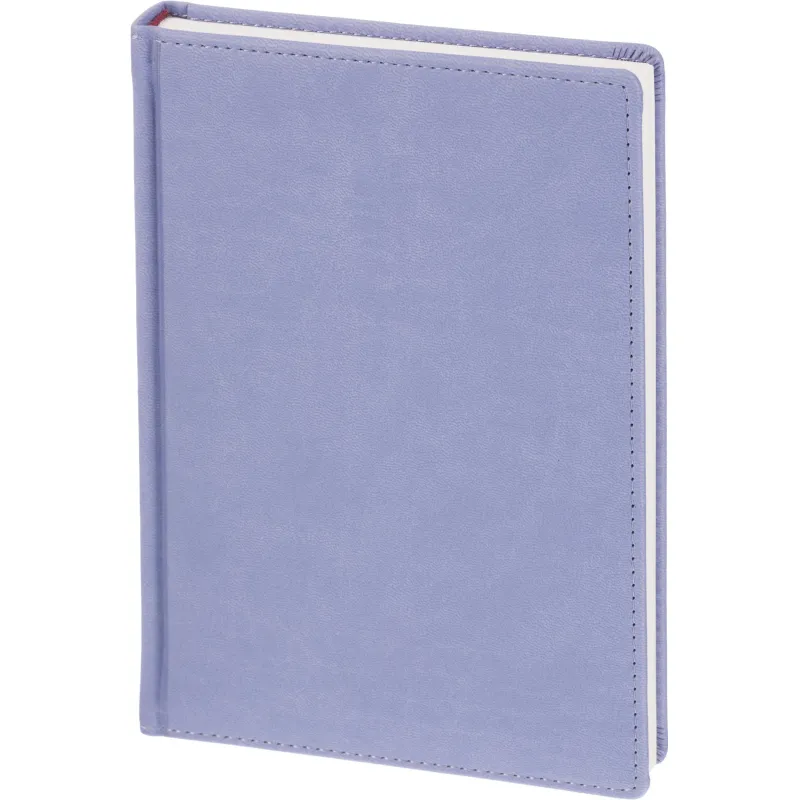 Ежедневник недатированный Attache Velvet искусственная кожа Soft Touch A5+ 136 листов сиреневый Ежедневник с твёрдой обложкой сиреневого цвета, выполненной из кожзаменителя с рельефом, имитирующим натуральную кожу, станет элегантным и практичным инструментом для работы. Обложка украшена декоративным швом, выполненным в тон с материалом, а скруглённые уголки подчёркивают его изящный дизайн. Внутренний блок на 136 листов из белой офсетной бумаги плотностью 90 г/кв.м. имеет линейку с печатью в два цвета. Внутри есть справочный раздел (14 страниц) и телефонная книга (18 страниц), структурированная по алфавиту. Ежедневник имеет размер 14.6?20.6 см и тип крепления блока — сшивка. Возможность нанесения тиснения логотипа на обложку делает его идеальным выбором для персонализации и корпоративных нужд.