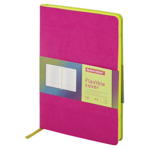 Ежедневник недатированный А5 (138x213 мм) BRAUBERG "Flex", кожзам, 136 л., розовый, 111683