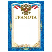 Грамота А4 синяя рамка, герб, триколор 230г/кв.м. 10шт/уп