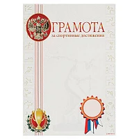 Грамота Спортивная формат А4, 20шт/уп, тиснение фольгой арт.БСГФ-009, 190г