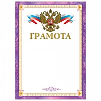 Грамота А4, мелованный картон, конгрев, тиснение фольгой, фиолетовая рамка, BRAUBERG, 128360