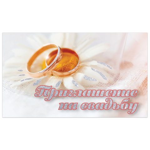 Приглашение на свадьбу 70х120 мм (в развороте 70х240 мм), "Кольца", блестки, ЗОЛОТАЯ СКАЗКА, 128931